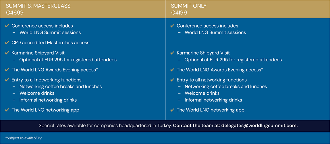 The online registration form will allow you to register up to 5 delegates, for group bookings, please email: delegates@worldlngsummit.com.